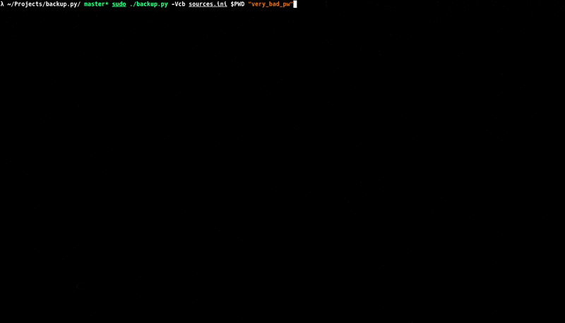 $ sudo ./backup.py --verbose --checksum --backup sources.ini $PWD "very_bad_pw"